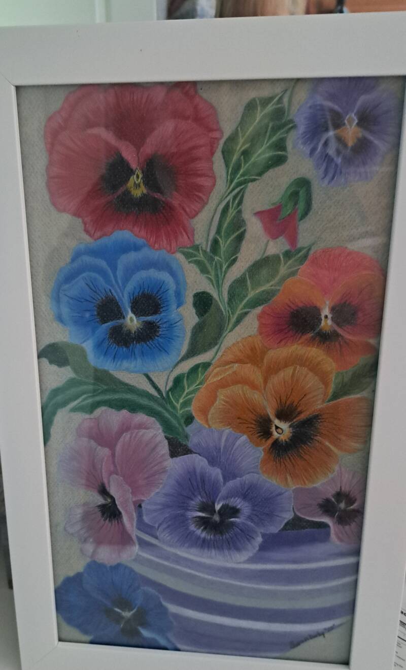 I really was excited for this gecko. I have never done birds or pansies, so this was an adventure. This is the 10th piece I have done for this family.